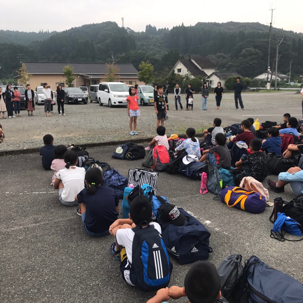 出発式です。元気に山田小、万江小連合で8時に出発しました。