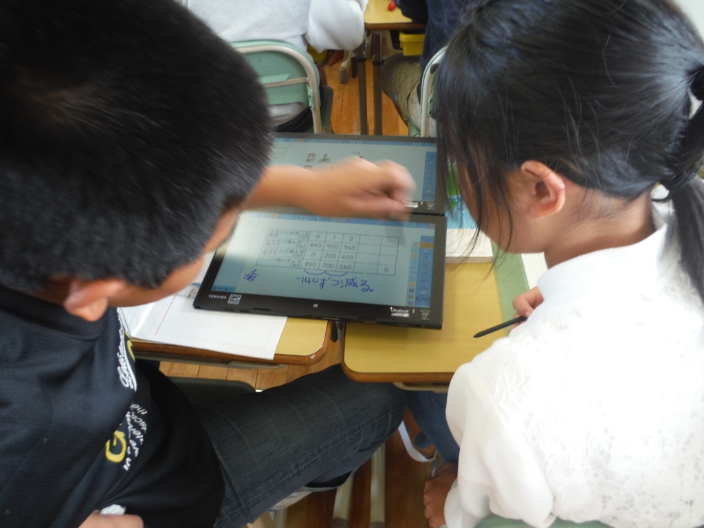 子どもたちは、タブレットを活用しながら「友だちと自分の考えを比較」したり、「自分の考えの根拠」に使ったりして、意欲的に学習に取り組むことができました。