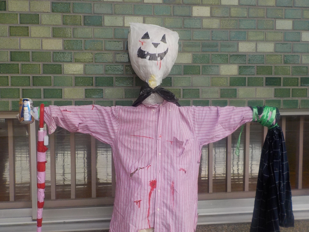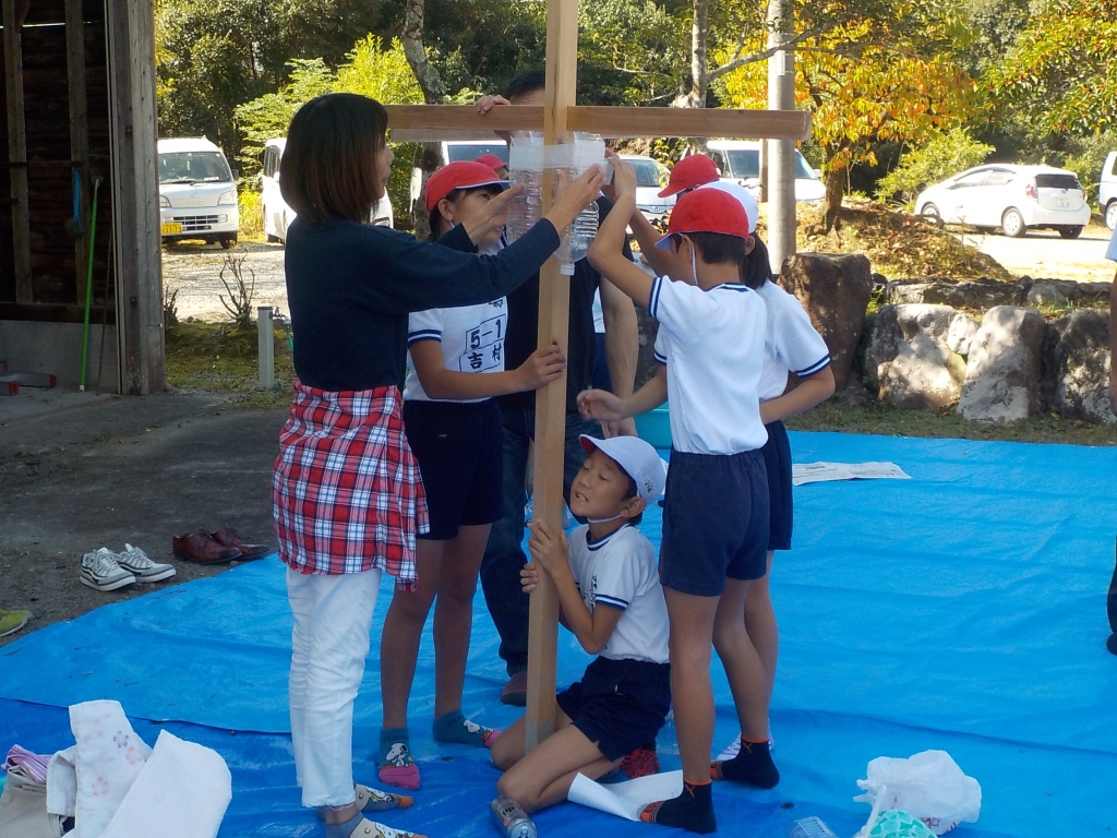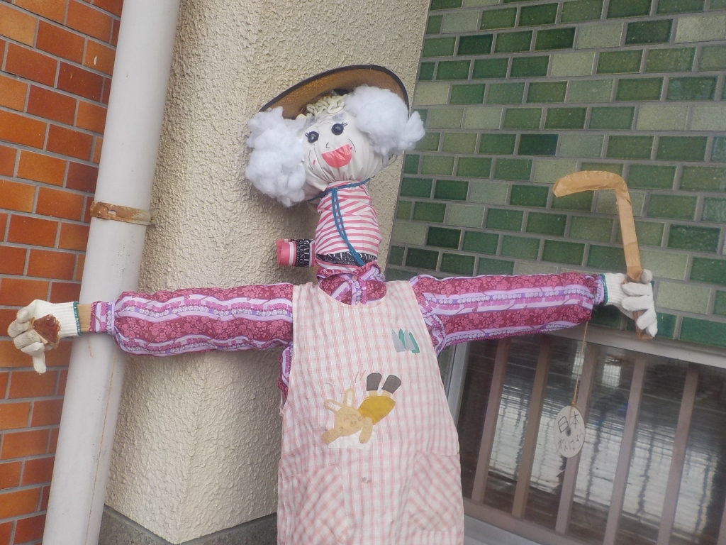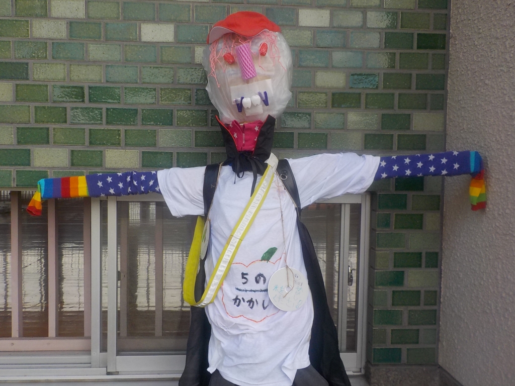 今日は、5年生がかかし作りをしました。保護者の方々も協力していただき、立派なかかしを作り上げることができました。
