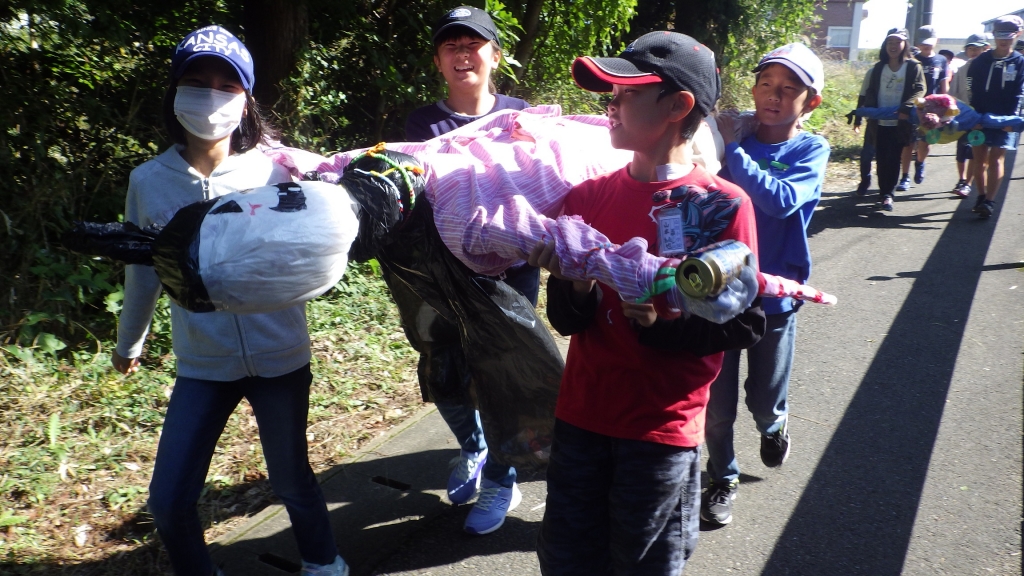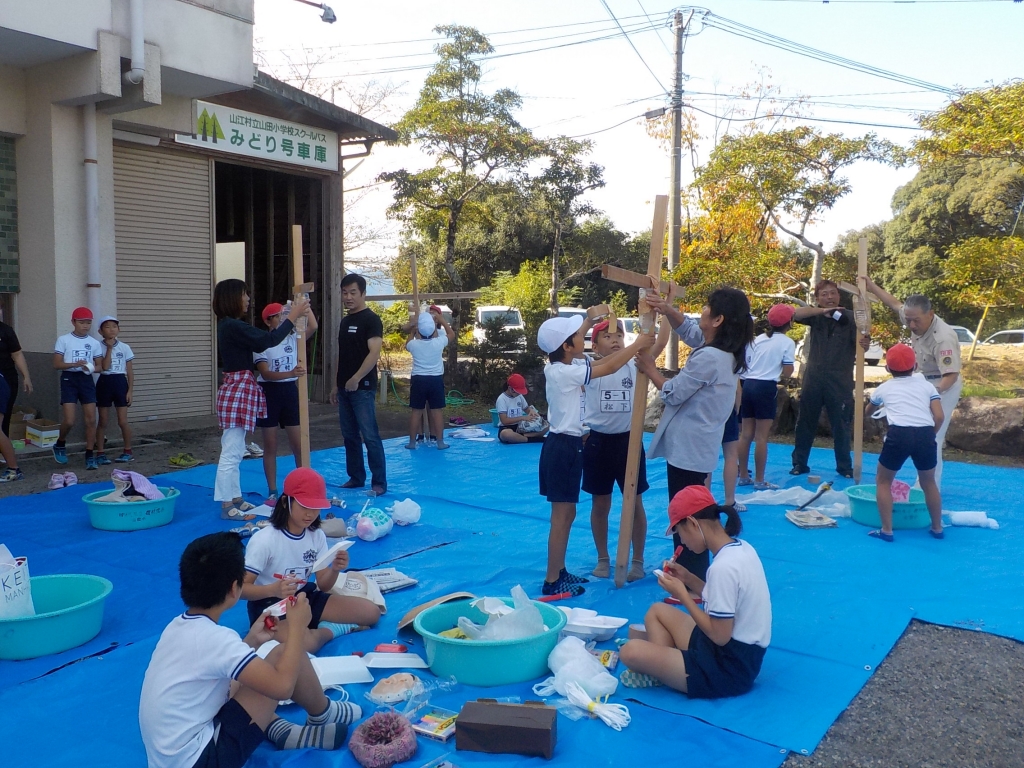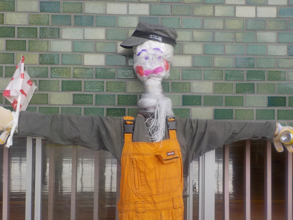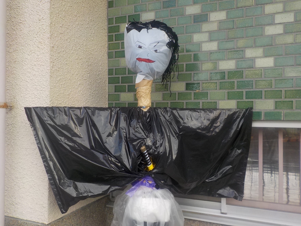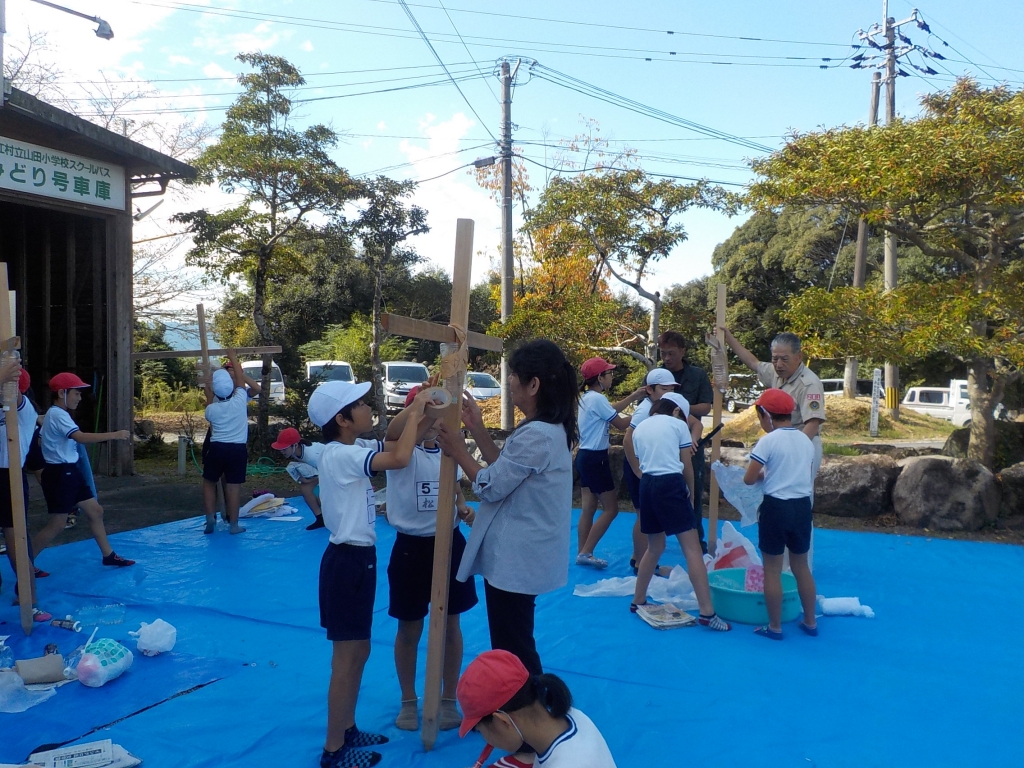 今日は、5年生がかかし作りをしました。保護者の方々も協力していただき、立派なかかしを作り上げることができました。
