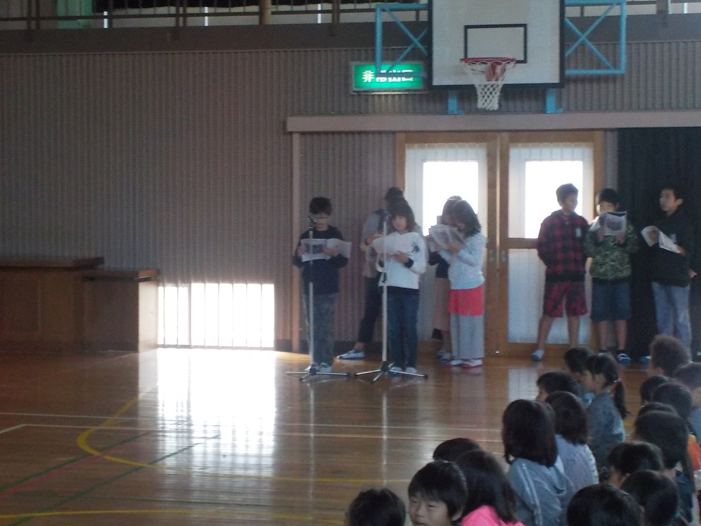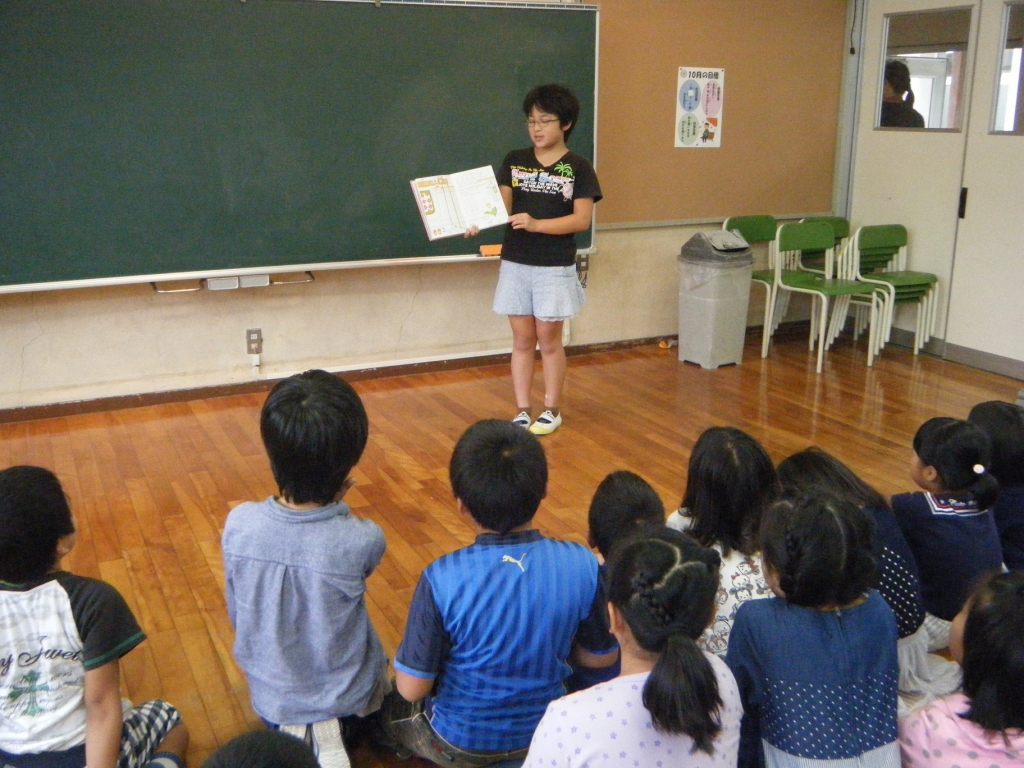 今日は、図書委員による「よみっこタイム」があり、「どろぼう学校」を読みました。読み聞かせでは、図書委員のみなさんが役割を決め、スタンドマイクを中心にローテーションをしながら上手に読むことができていました。