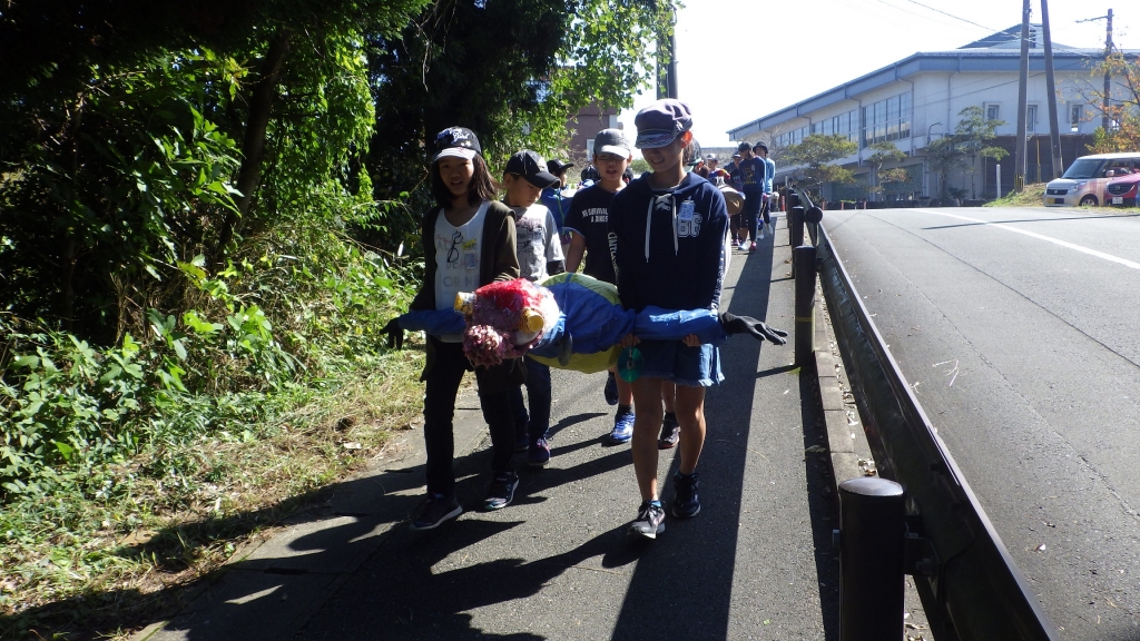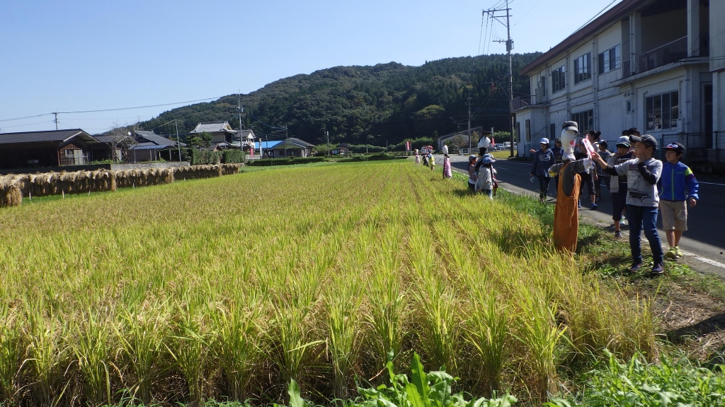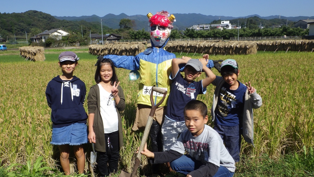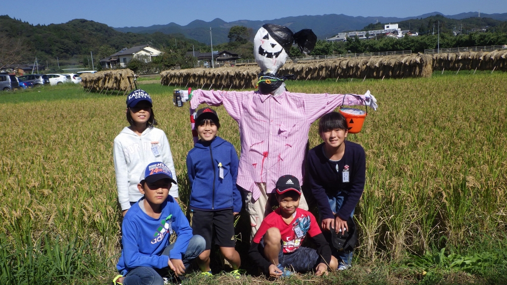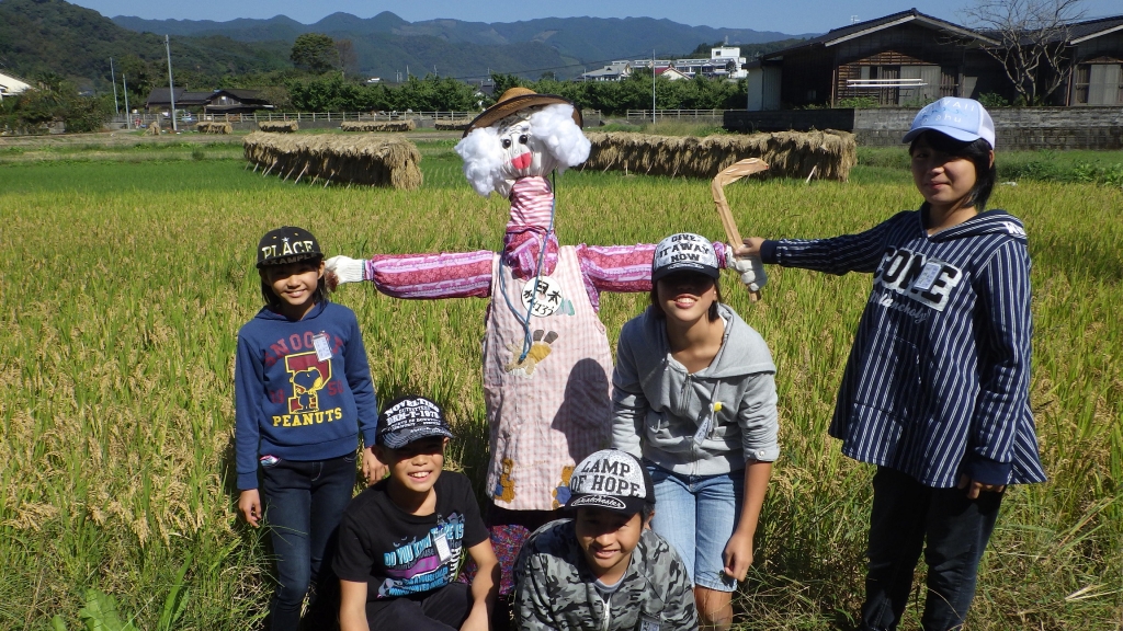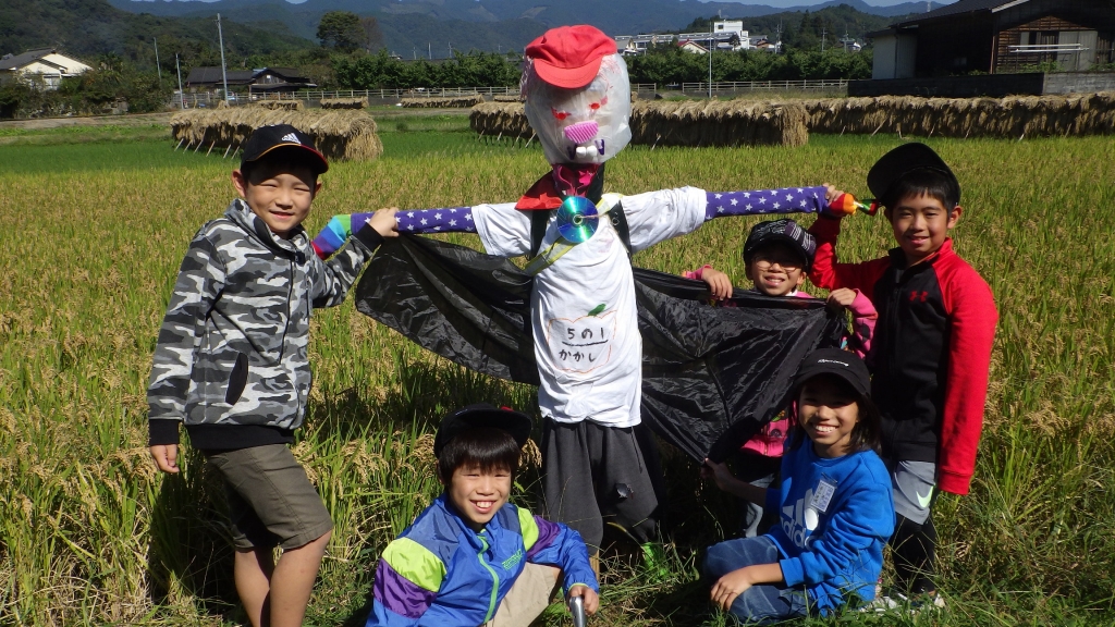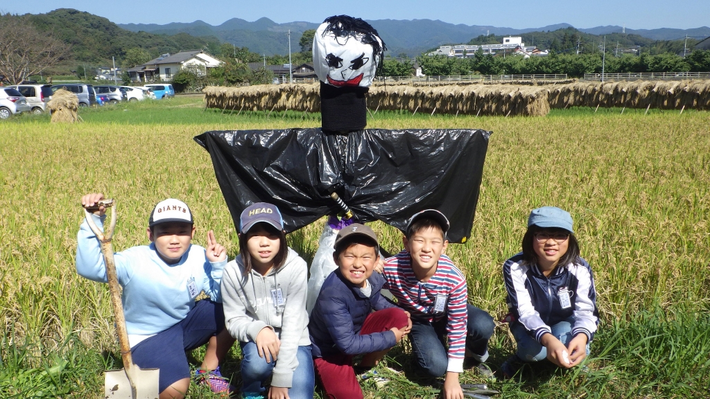 今日は、5年生がかかしを立てにいきました。自分たちで作ったかかしを、丁寧に立てている5年生の姿が見られました。
