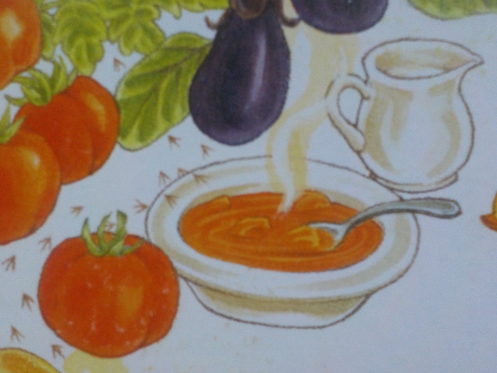 コラボ給食とは、「給食のメニューの一品」と「本に出てくるメニュー」をコラボレーションする取組です。今日は、「ぎょうれつのできるすうぷやさん」の中に出てくるスープがメニューとして登場しました。