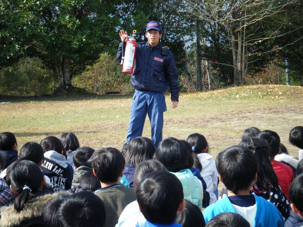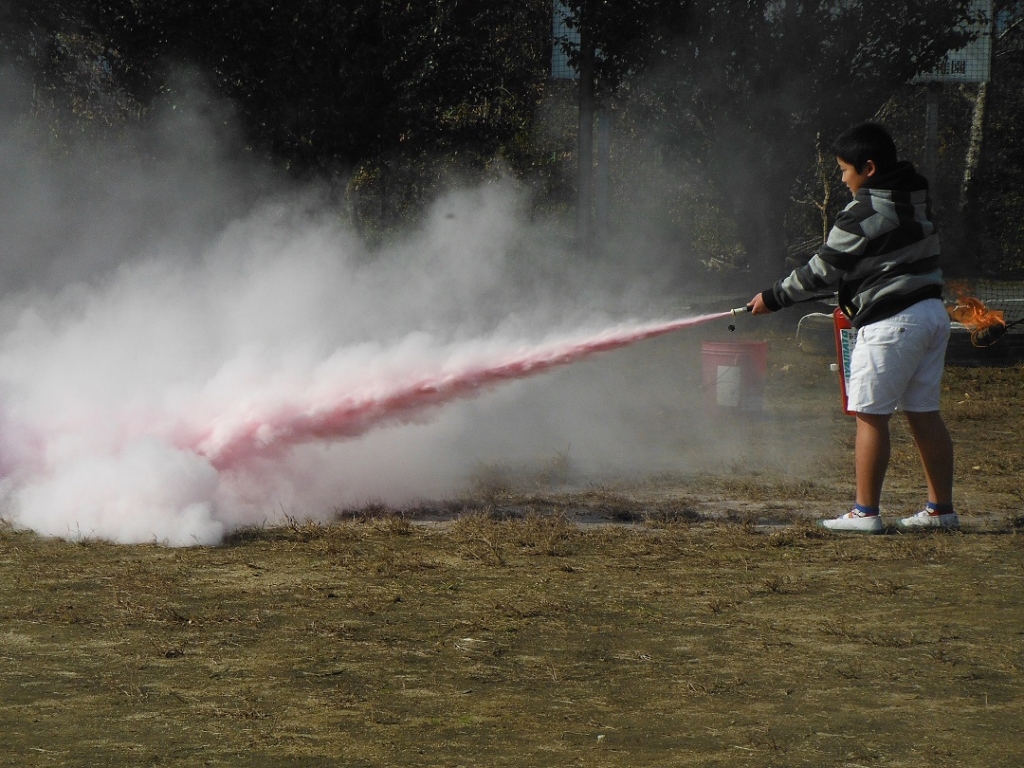 また、消火器の使い方もあわせて学びました。訓練中、子どもたちは真剣に取り組むことができていました。