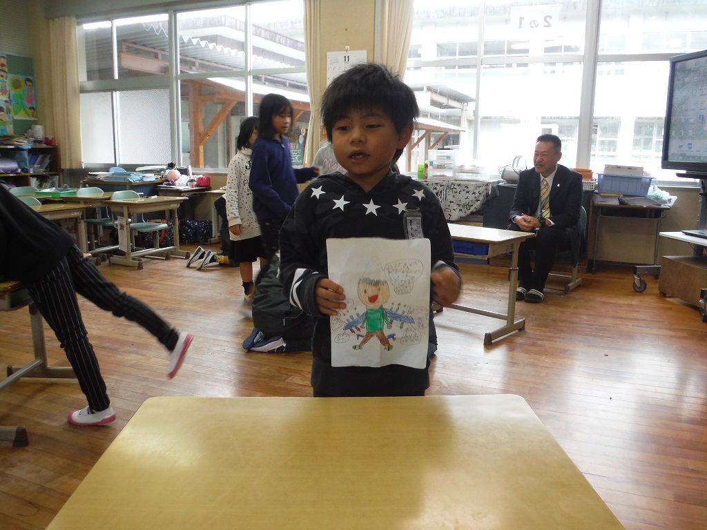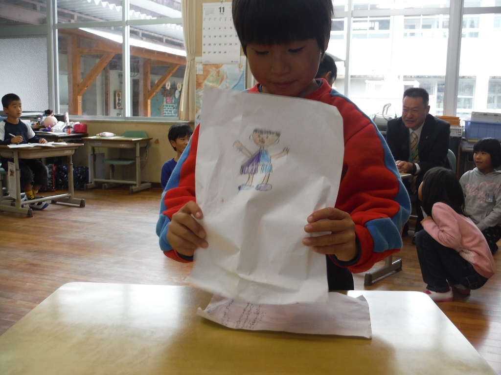 2年生の国語「あったらいいな こんなもの」の学習では、子どもたちから「校長先生にもぜひ発表を聞いてほしい」という意見があり、2時間目に校長先生も授業に参加していただきました。