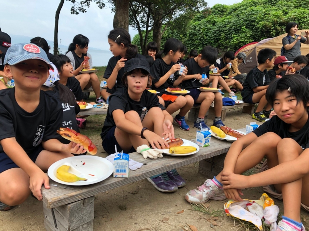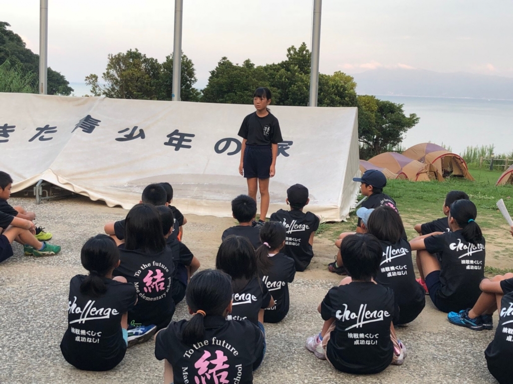 5年生の恒例行事、集団宿泊教室が万江小学校と合同であしきた青少年の家で行われました。一日目の昼間はニュースポーツとフォトウォークラリーで交流を深めました。キャンプ場に移動してからは、テント立てや野外炊飯で四苦八苦しながらも、班の人と協力していました。夜は月明かりの影響で海ほたるは見えにくい状態でしたが、観察することができました。2日目は、ローラールージュを楽しみ、ペーロンにも挑戦しました。みんなと協力しなければ進まないペーロンで心を一つにすることの大切さを学んだようです。日が暮れてナイトゲームで友だちと夜の散歩を楽しみました。友だちと夜歩くなんてしたことない!という子がほとんどで貴重な体験ができたようです。2日ともたくさん動き回ったので、3日目は起床時間ぎりぎりまでぐっすりと寝ていました。3日目には水俣に移動し、語り部さんの話や施設の見学、環境学習を通して、他の人のことでも自分のこととして考える大切さを学ぶことができました。この3日間で他の学校の人にも良い刺激をもらうなど、得たものは大きかったようです。この得たものを集団宿泊教室で終わりにせずに、学校生活に生かしてほしいと思います。
