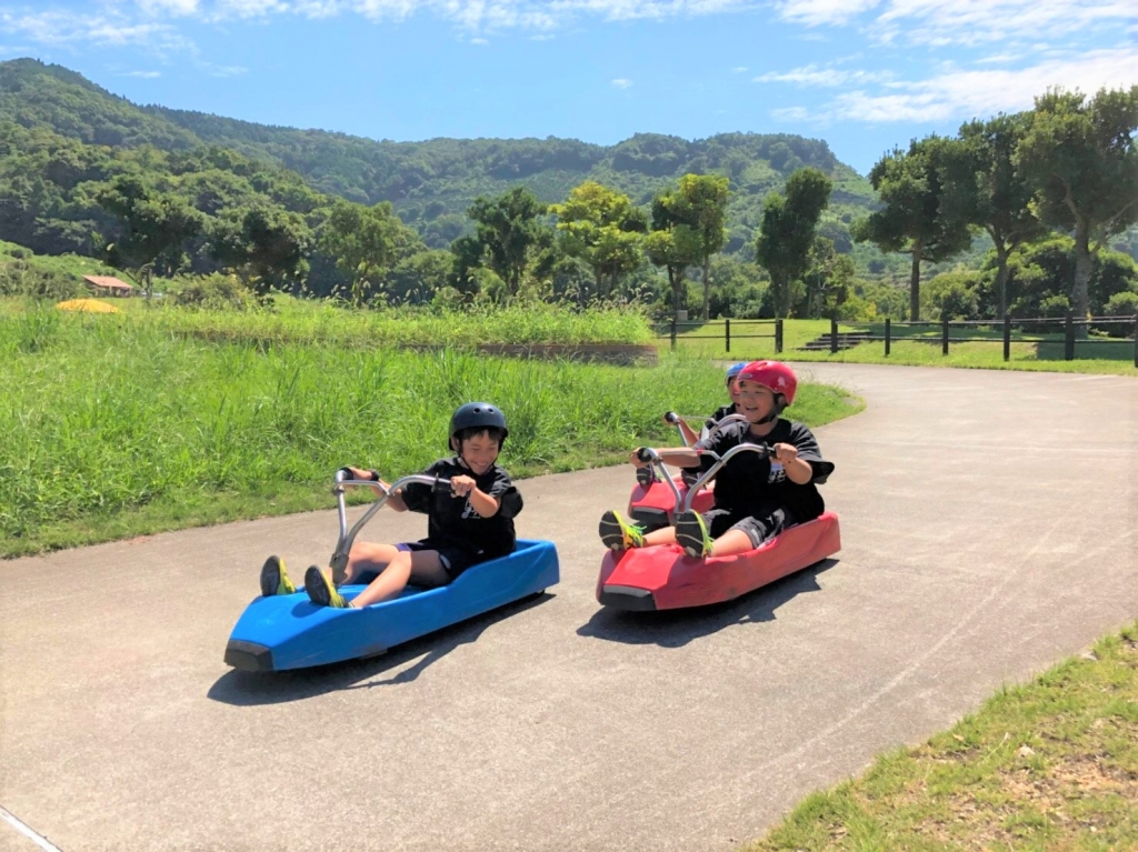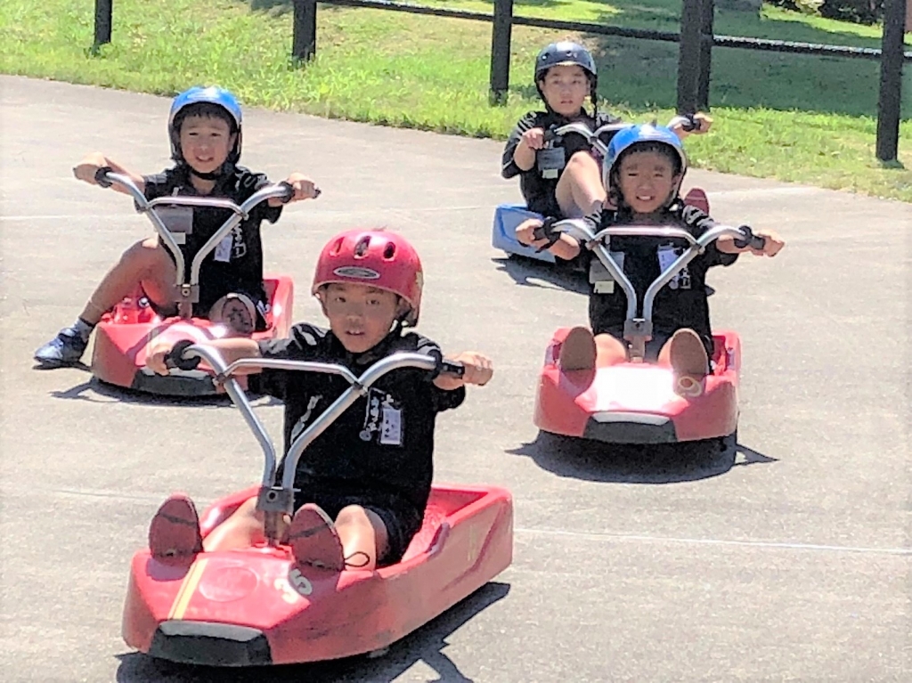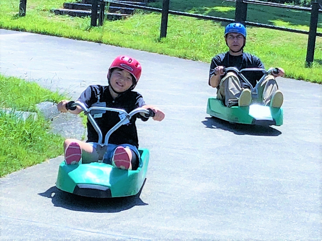 晴天のもと、子どもたちは、ローラーリュージュを楽しんでいます!!