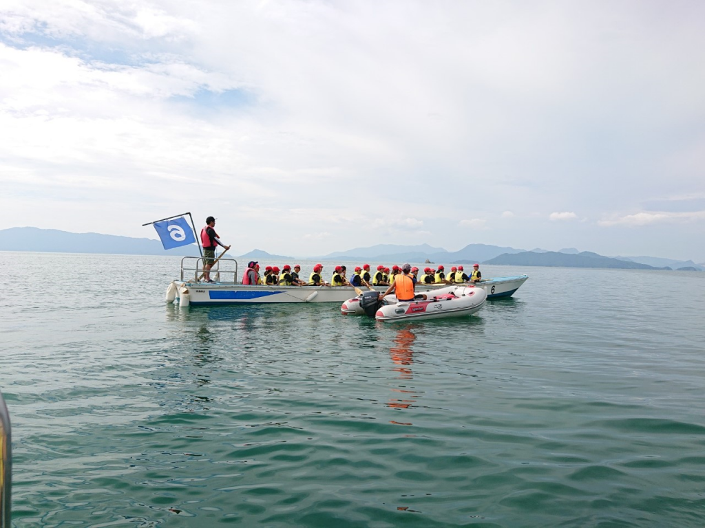午後の活動はペーロン船体験です。子どもたちが楽しみにしていた活動です。説明をしっかりと聞いて、活動に臨みます!