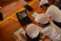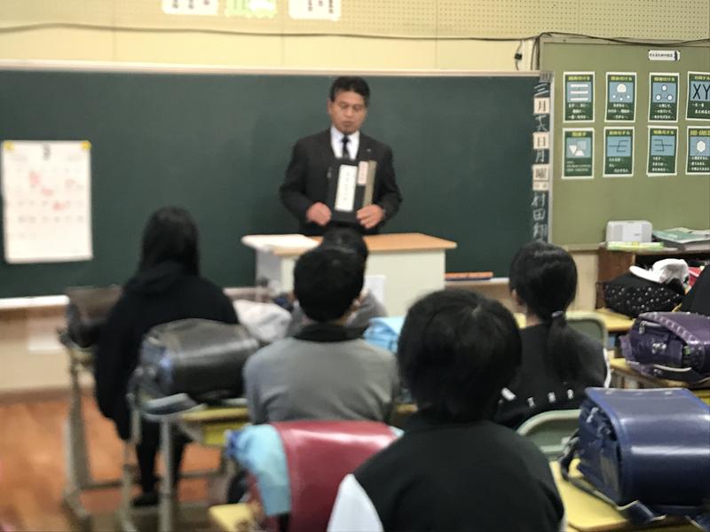 学校の宝であり、永久に保管される「卒業台帳」について話をしていただきました。児童名の上に押してある「割印」は、これから子ども達が手にする「卒業証書」に、その半分が押してあるということを紹介していただきました。臨時休校となり、子ども達も不安が多いとおもいますが、皆で心ひとつに困難を乗り越え、卒業式に向けて前進していきたいと思います!