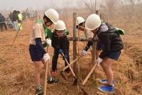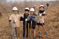 2月1日(土)に丸岡公園にて「万江川水源の森づくり」植樹祭が開催され、山田小みどりの少年団が参加しました。記念植樹の後、万江小みどりの少年団や南稜高校の生徒、NEXCO西日本の方々などと一緒にモミジ50本を植樹しました。その後役場に移動し、おにぎりとしし汁をいただきました。ありがとうございました。