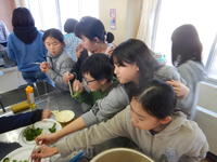 2学期に植えた冬野菜が収穫の時期を迎えました。5年生はブロッコリーを収穫して、ブロッコリーパーティーをしました。収穫したときは「全部食べきれるかな?」と思うほどの量でしたが、おいしかったようであっという間に完食してしまいました。他にも野菜があり、花もきれいに咲いてきています。これからも植物を大切にしていってほしいと思います。