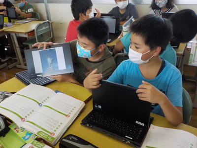 有名な建物やおすすめのお土産などを調べて、スライドを作り、説明しました。