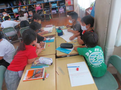5年生の国語の学習で,自分の立場をはっきりさせて計画的に話し合いを進めていく学習を行いました。今回は,「飼うなら犬か猫か」をテーマに話し合い,意見をグループの班長がまとめていきました。学習が深まる話し合いになるよう,これからも話し合いの練習を続けていきます。