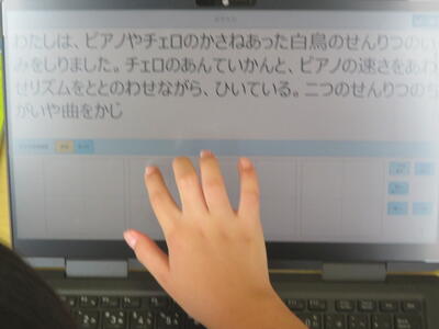 タブレットに向かって一生懸命に音読し、何度も聞き返したり、読みなおしたりして上達してほしいと思います。