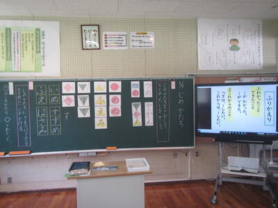 今日は杉の子1組教室で、書写の授業がありました。内容は「ひらがなの かきかた『じの かたち』」です。