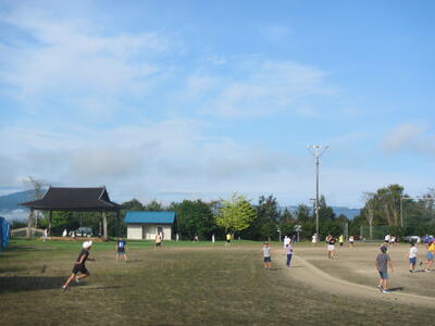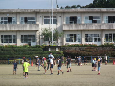 元気に走ります。左奥は「相撲場」です。 ドッジボール。学年差を考えて遊びます。