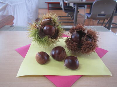 この時期、元気坂にはたくさんの栗が落ちます。私が「元気くり‼」と勝手に命名しました。拾ってみると結構大きいのもあります。