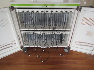 いつもはタブレットが並ぶ保管庫も「空っぽ!」です。 このケースに入れて持ち帰ります。