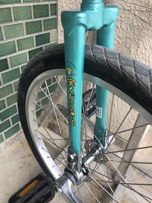 サドルには「宝くじ号」のネーム入りです。 宝くじからの贈りもの:大切に使います。