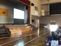 前回同様、体育館でスクリーンに絵本を投影しながらの読み聞かせで絵本の世界を楽しみました。