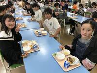 今日の6年生の給食は、お祝いメニューでした。おにぎりや揚げパン、ハンバーグ、ポテトサラダ、ほうれん草ムースなど、とても豪華な料理を準備していただきました。子どもたちも大喜び。山江村の給食に改めて感謝しながら、美味しくいただきました。