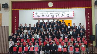 本日、令和3年度卒業証書授与式を行いました。卒業生全員が参加しての素晴らしい式となりました。卒業生のみんな、本当におめでとう。中学校に行っても頑張れ!山田っ子!