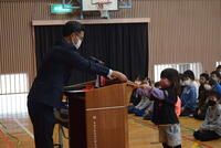 今日は、1~5年生の修了式でした。各学年の代表児童が校長先生から修了証を受け取りました。校長先生からは、各学年の1年間の頑張りについて話がありました。修了式を通して、子どもたち一人一人がこの1年間をしっかり振り返ることができたのではないかと思います。春休みは、けがや病気、事故等に注意して安全に過ごし、次の学年に向けて準備を進めてほしいです。