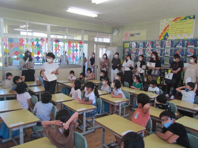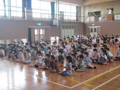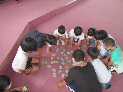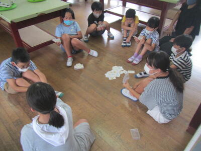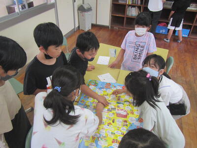 朝の15分間を使って縦割り班遊びをしました。戻り梅雨のような雨天続きのため、室内でできる遊びを行いました。上級生が下級生の面倒を良く見て仲良く過ごす姿は、いつみても微笑ましいものです。