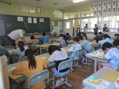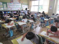 本日は第1学期の漢字計算大会を行いました。1年生から6年生まで全員が、それぞれの学年に応じた国語と算数の問題に挑みます。一人一人がパーフェクト賞を目指して集中して取り組んでいました。結果が楽しみですね。