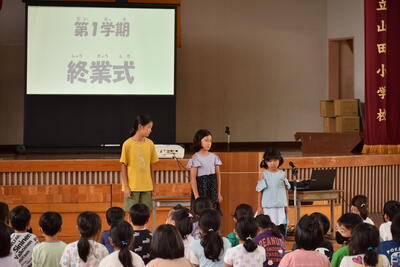 7月20日(水)は第1学期終業式でした。67日間の1学期でしたが、集団宿泊教室や運動会の他、各学年でいろいろな行事に取り組みました。もちろん勉強も頑張りました。学期末の漢字計算大会ではたくさんの人が満点の金賞をもらうことができました。一人一人がその1学期の頑張りがたくさん詰まった通知表を持って帰りました。いよいよ夏休みの始まりです。1学期の頑張りを2学期につなぐことができるように、勉強と遊びのバランスと規則正しい生活を心掛けて、8月25日に全員元気で登校してほしいものです。
