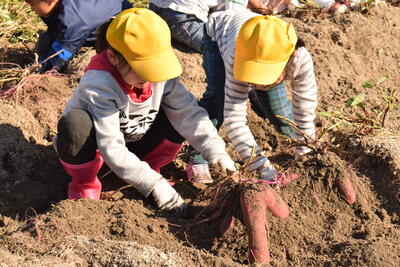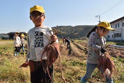1年生は、「楽しかった。」「みんなと協力できてよかった。」「たくさん大きな芋がほれた。」などと話していました。