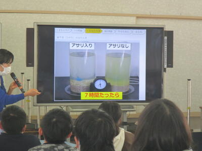 あさり貝が水をきれいにすることに驚きました。 いろいろなクイズに答えて学習を深めました。