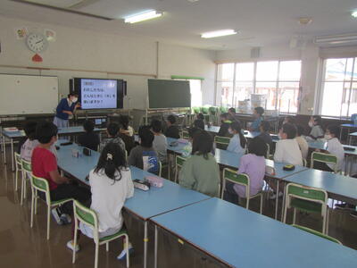 21日に5年生が「環境出前講座」を行いました。熊本県環境立件推進課から講師の先生に来ていただき、「水」を中心に環境問題について学びました。前半は説明とクイズを中心に学習し、後半は実験を行って「生活から出る水の汚れ」について考えました。実験の結果、講師の先生が用意された山江村を流れる「山田川」の水がとてもきれいだということがわかり感動していました。みんなできれいな川、美しい山江村を守っていきましょう。