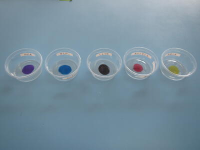 5種類の水を使って実験します。一番左が山田川の水です。 一番下が山田川の水です。きれいな水に分類されます。