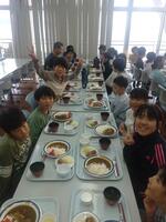 待ちに待った夕食です。献立は、カレーと唐揚げでした。みんなもりもり食べています。