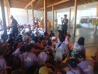 マリン活動が始まります。みんなで協力してペーロンを進める活動です。