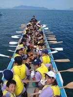 はじめは思うように動かせなかったペーロンでしたが、みんなで声を出し、動きを合わせて漕いだことで、どんどん進むようになりました。
