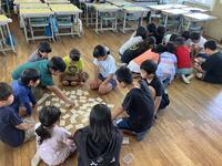 今日の朝の活動は、たてわり班で遊ぶ時間でした。前日の雨で運動場が使えなかったため、室内での活動になりましたが、どの班も楽しそうに遊んでいました。