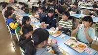 今年度もランチルームで1年生から6年生までが揃って給食をいただきます。