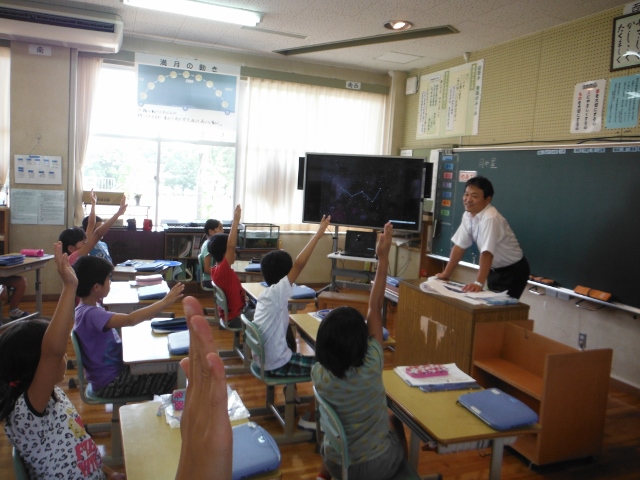今日の5校時は、4年生理科「月や星」の研究授業がありました。