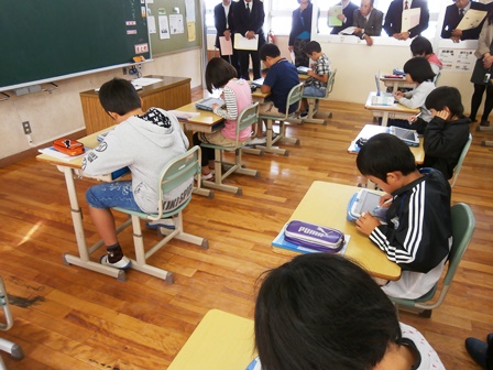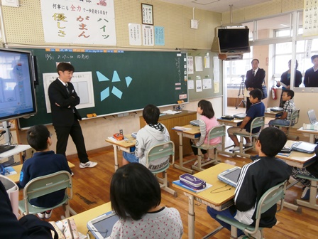10月31日(金)は研究発表会がありました。4年1組では算数「垂直・平行と四角形」の授業がありました。新しく「台形」や「平行四辺形」の定義を知る時間で、子どもたちは、タブレットPCを活用しながら四角形をつくり、平行な辺に着目して四角形を弁別しました。「考えの共有」を図るところでは、まだまだ課題はありますが、子どもたちは自分の考えを伝えようと頑張っていました。