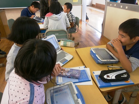 10月31日(金)に研究発表会がありました。4年2組では、理科「ヒトの体のつくりと運動」の学習で、「他の動物も、ヒトと同じ体のつくりや体を動かす仕組みになっているのだろうか?」というテーマで学習しました。グループごとに調べたい動物をきめ、まずは一人で調べ学習、次にペアで確かめ合い。動物の種類ごとに、タブレットパソコンから電子黒板に転送し、調べて分かったことを発表しました。最後に、テーマに戻って、自分の考えをまとめました。分かったことから、体のつくりや体を動かす仕組みについて、一人一人くわしくまとめることができました。