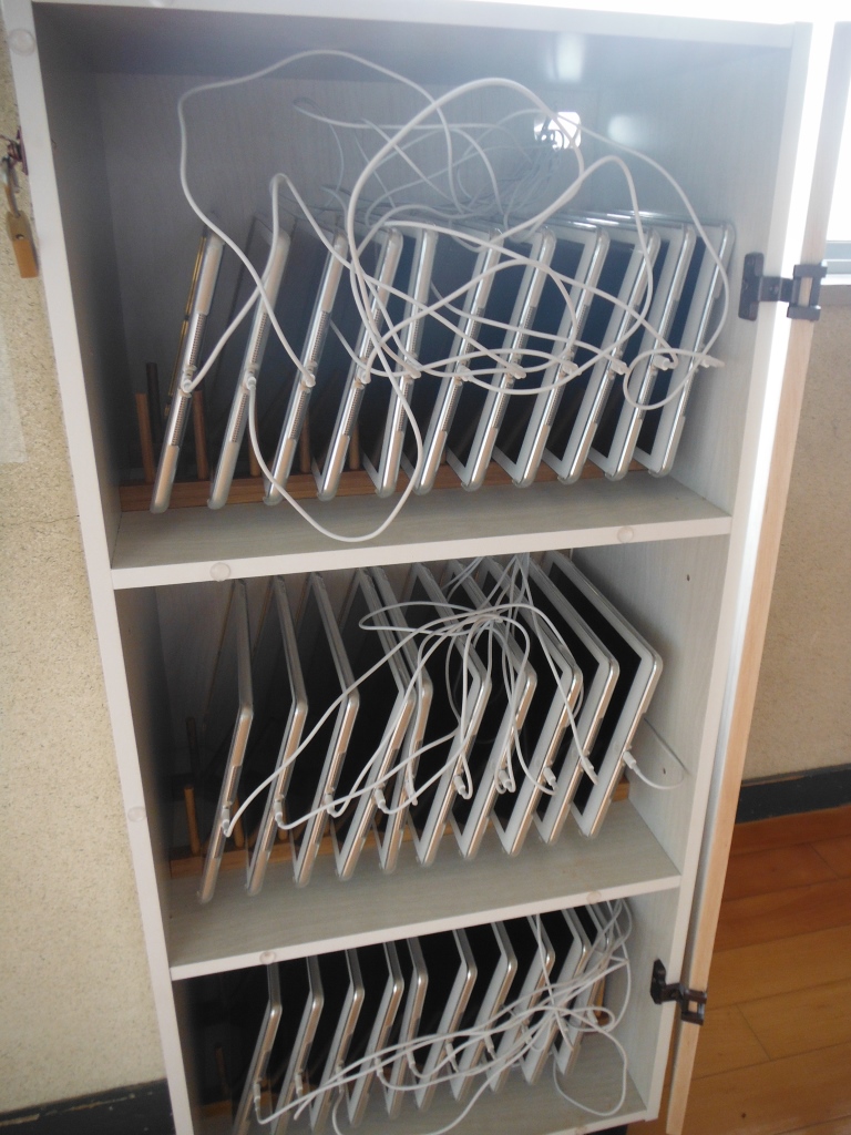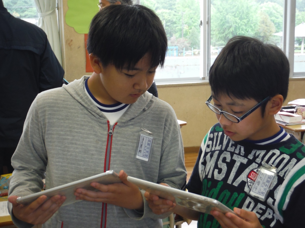 今年度はタブレット端末(I Pad)32台を導入していただきました。主に6年生で活用していく予定です。地域での学習や家庭学習にも生かしていきたいと考えているところです。今後もタブレット端末の日用的な活用を進め、新たな活用方法を発見していきたいと思います。