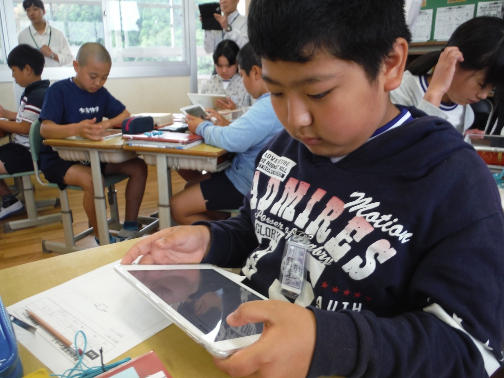 今年度の校内研修の提案授業として、5月12日(火)に6年生で社会科の授業が行われました。今回は「課題別グループ」から「学習グループ」へと学習形態を変化する協働学習に挑戦した授業でした。今年度新しく導入していただいたIPadを子どもたちが使いこなし、個の学び、グループの学び、全体での学びの充実を目指して思考する子どもたちの姿がとても印象的でした。課題・修正点もたくさんありましたが、今後の研究に全職員で共通理解をしながら生かしていきたいと思います。