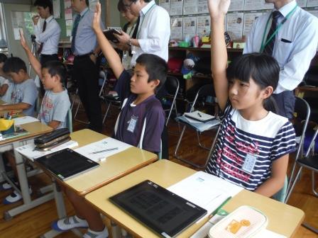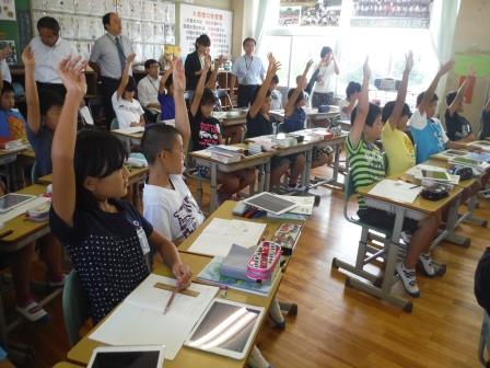 長い夏休みが終わり、2学期の研究発表会(12月4日)に向けて山田小の研究も再スタートです。9月8日は熊本県教育庁教育政策課山本主幹、啓林館様、日立様が来校され、第3回授業研究会として大研1本、中研3本を行いました。