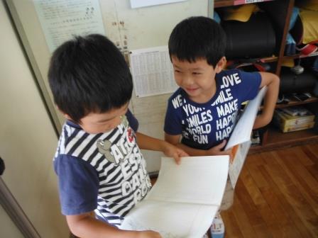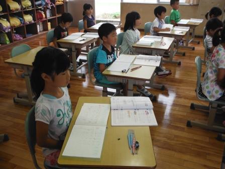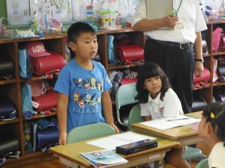 2年算数科では、「たし算・ひき算」の学習で3つの数のたし算について考える授業でした。2年生ながらペアや全体で学び合うための学習課題を設定され、その課題について2年生の子どもたちが真剣に議論を展開していました。研究発表会でも算数科の授業を提案させていただく2年生です。「問題解決的な協働学習」の姿をこれからさらに高めていきたいと思います。