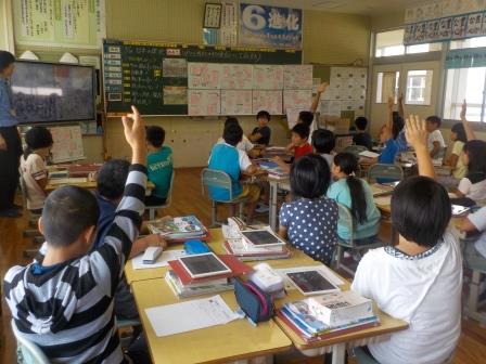 ICT教育の学校視察に東京大学からお客様が来られました。6年生社会科「明治の国づくりを進めた人々」の授業を参観され、子どもたちがタブレット端末を自由自在に使いこなしながら学習を進めていく姿に大変驚かれていました。KJ法を用いたグループ学習もとても充実してきた6年生です。研究発表会に向けてこれからさらに「進化」していきたいと思います。