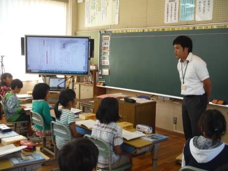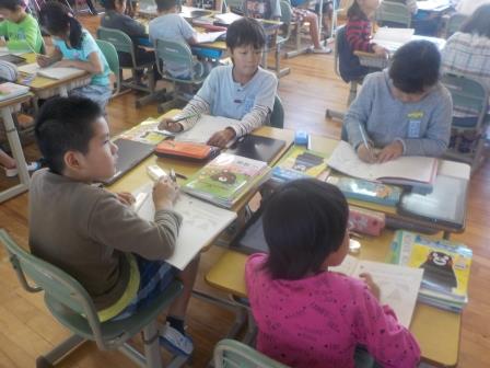 3年生のふるさと教育は「山江村くりくり探検隊」です。栗農家の勝原さんのところへ体験・見学・インタビューに行ったことをもとに、「勝原さんの思いや願い」「これから自分たちにできること」について考える授業でした。タブレット端末を用いたインタビュー動画の視聴、グループでの協働学習など、いたるところに子どもたちの「アクティブ・ラーニング」の姿が見られました。これからもふるさと山江を大切に思う心を育てていってほしいと思います。