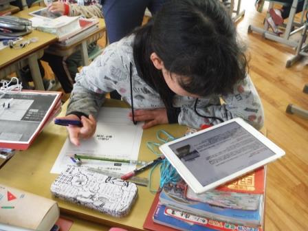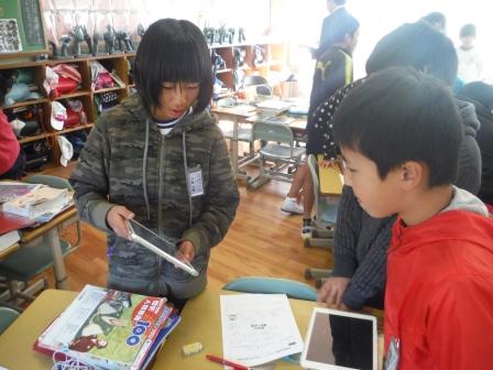 4年生の道徳では、今年度指定を受けている文部科学省委託ICTを活用した自治体応援事業の一環で、「ふるさと教育」を授業の中で展開しました。道徳の学習パターンが確立されており、子どもたちも安心して、そして、積極的に授業に取り組んでいました。終末の場面では、本村の「時代の駅むらやくば」の写真を提示し、ふるさとを愛する心の醸成につなげることができました。本事業は来年度も指定を受けており、さらに研究を進めていくことになります。