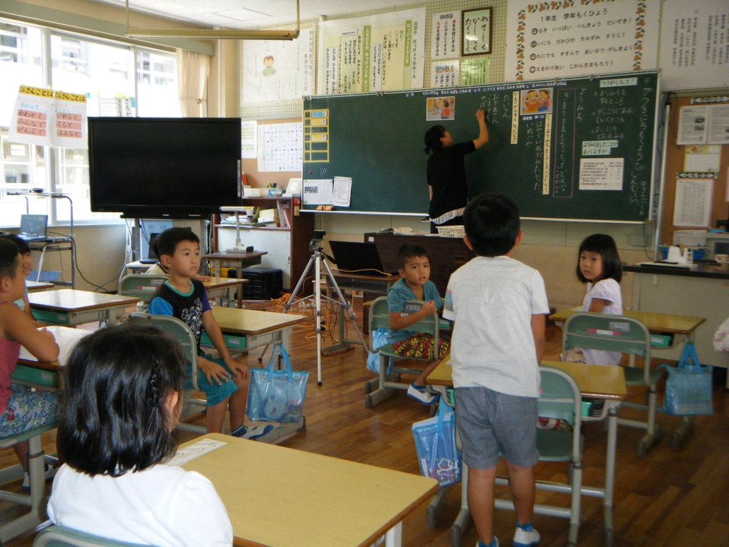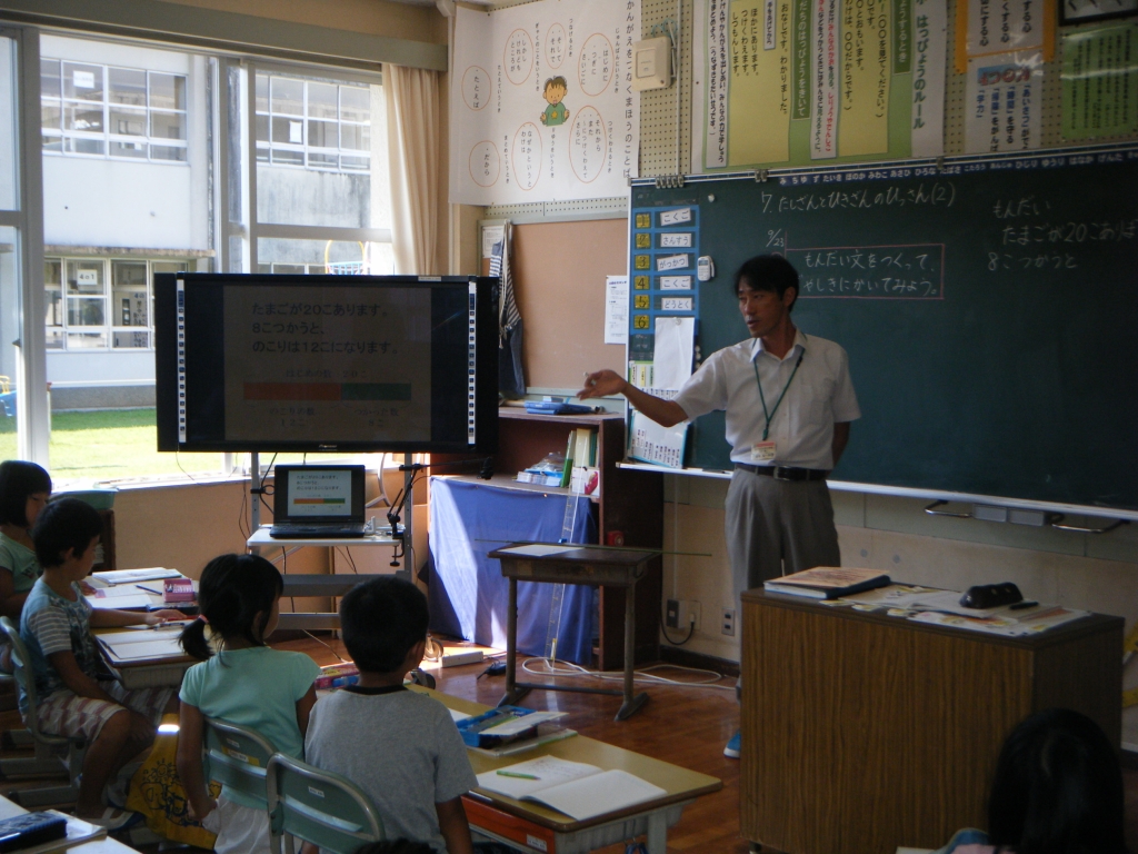 子どもたちは、電子黒板を示しながら、自分の考えをみんなに伝えることができていました。